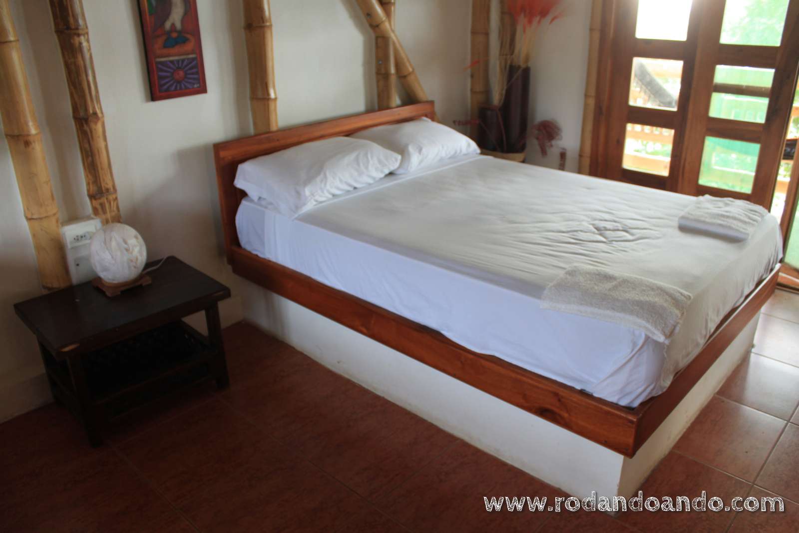 …la combinación de blancos, con bambú y madera hace el ambiente agradable, observen como en esta habitación el bambú es estructural, soporta a la ventana y es parte de las paredes…