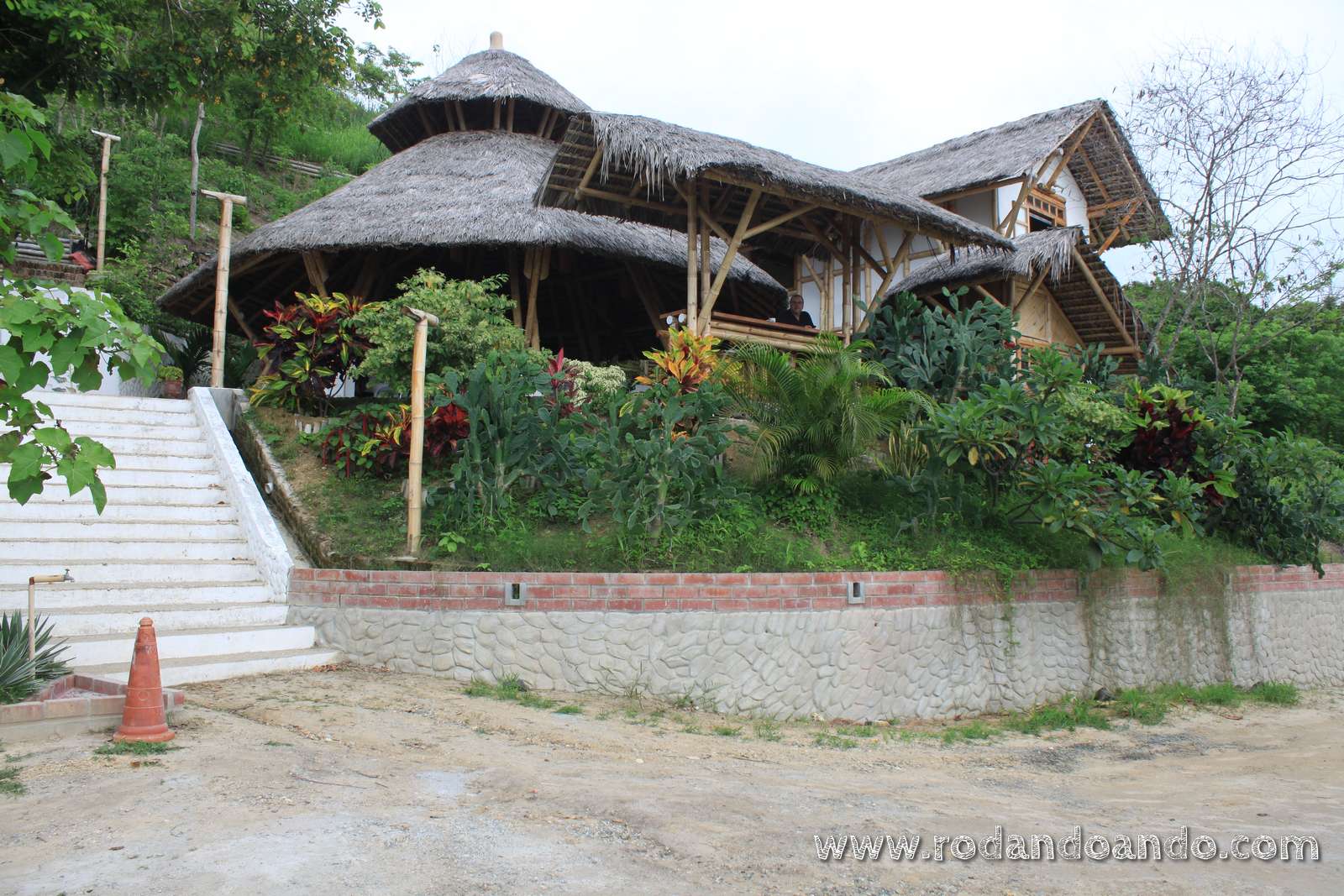 Mauricio nos contó que el hotel está construido con materiales ecológicos como el bambú y la paja toquilla para lograr ambientes en armonía con la naturaleza sin perder la comodidad y belleza de su arquitectura.